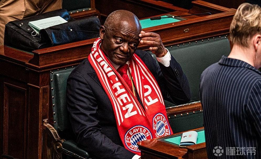 拜仁淘汰皇马后,孔帕尼父亲围着拜仁围巾参加比利时议会活动