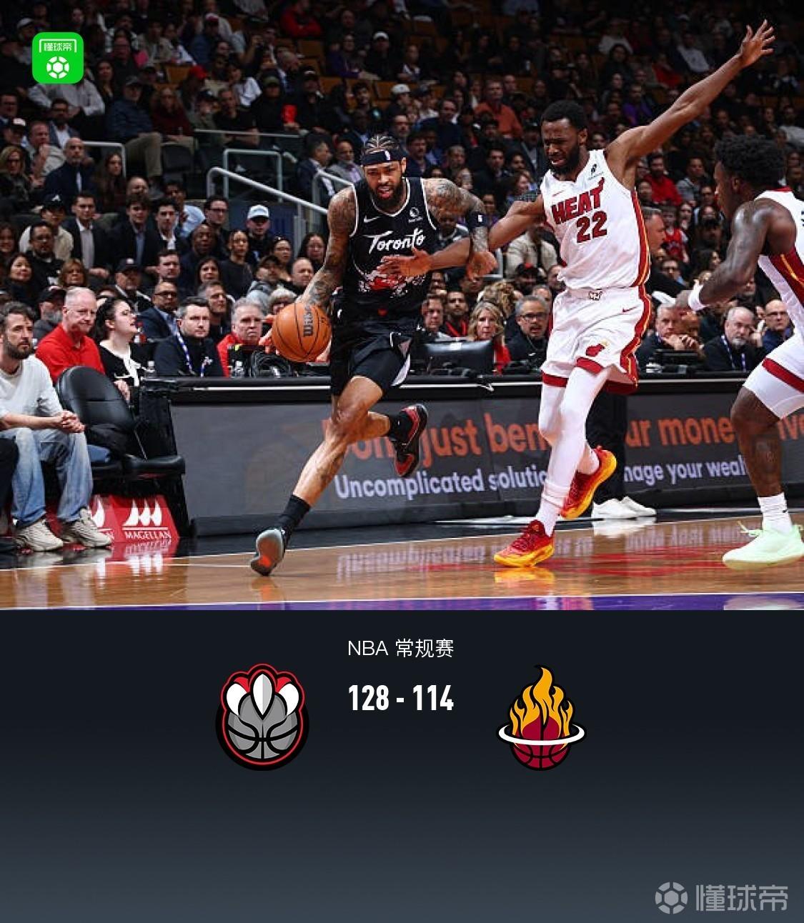 猛龙128-114力克热火,英格拉姆38+7+7,阿德巴约空砍24+11+8