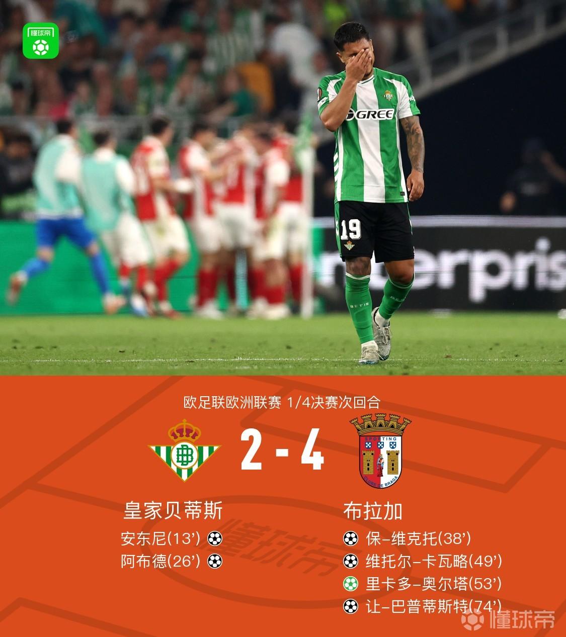布拉加两回合5-3逆转贝蒂斯晋级 安东尼破门巴普蒂斯特世界波